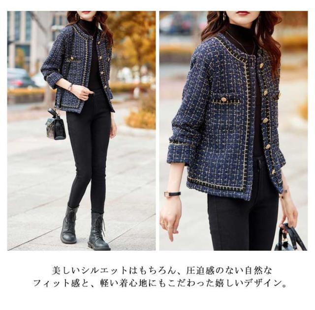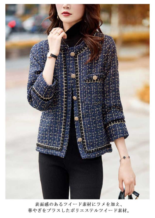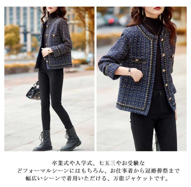 ジャケット レディース ツイード ジャケット 春 秋 ノーカラー ジャケット 長袖 アウター 春服 入学式 卒業式 入園式 卒園式 母親 ママ スーツ 結婚式 フォーマル カジュアル オフィス お宮参り 七五三 パーティー 20代 30代 40代 50代 大きいサイズ 送料無料