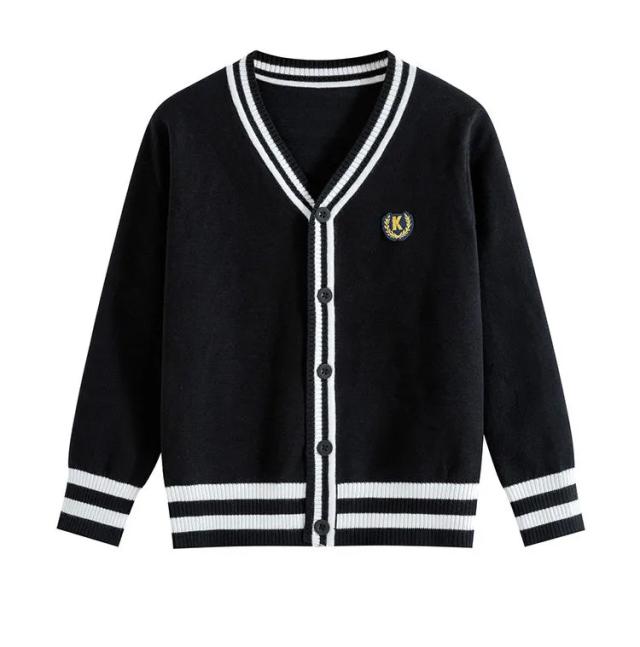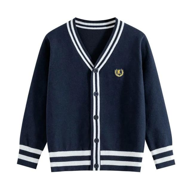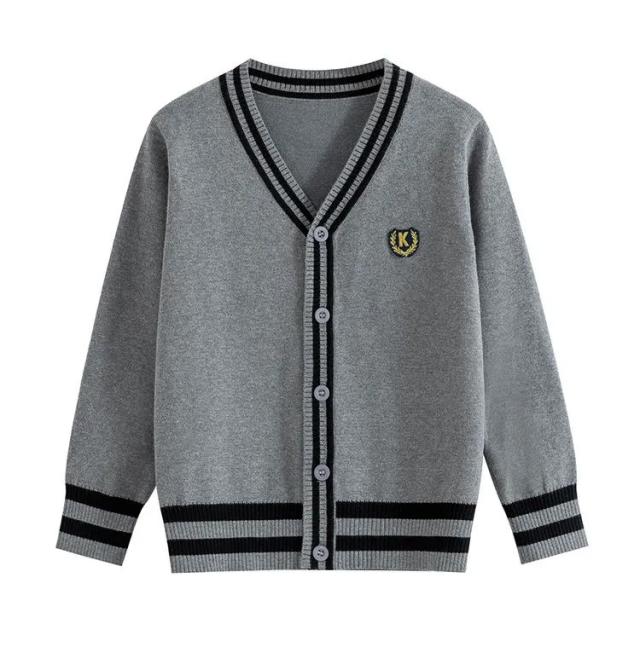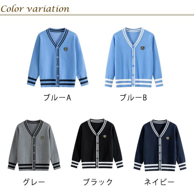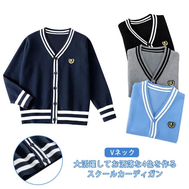 カーディガン スクールカーディガン 制服 Vネック ワンポイント ライン入り 前開き リブ編み 秋冬 春 羽織り ニットカーディガン スクールセーター 子供服 キッズ 学生服 高校生 小学生 グレー ブラック ネイビー ブルーグレー ブラック ネイビー ブルー