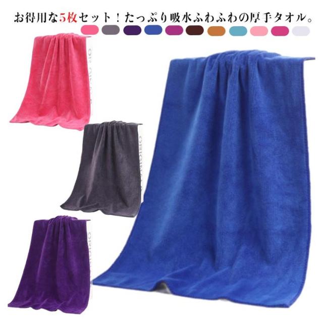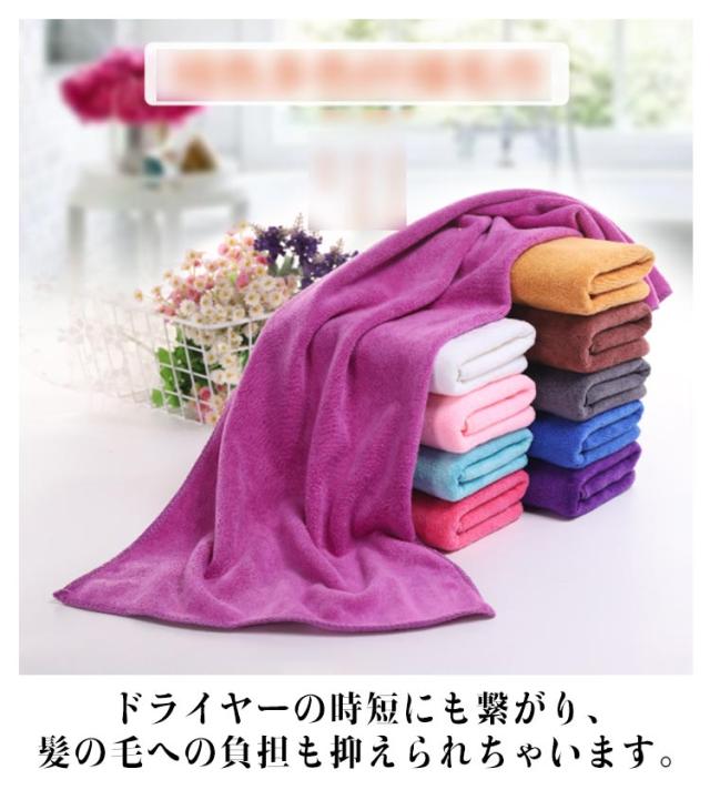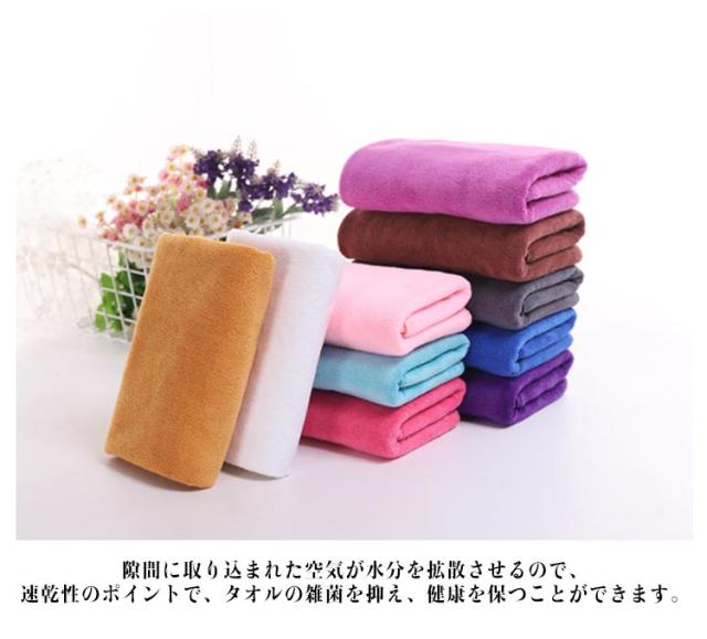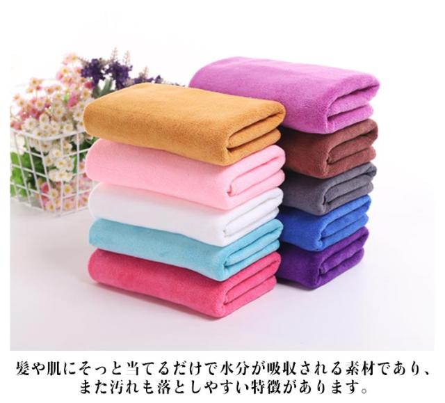 | お得用な5枚セット!たっぷり吸水ふわふわの厚手タオル。 マイクロファイバー素材の表面は数えられない隙間があり、その隙間に大量の水分を素早い吸水できます。 髪や肌にそっと当てるだけで水分が吸収される素材であり、また汚れも落としやすい特徴があります。 隙間に取り込まれた空気が水分を拡散させるので、速乾性のポイントで、タオルの雑菌を抑え、健康を保つことができます。 ドライヤーの時短にも繋がり、髪の毛への負担も抑えられちゃいます。 | |