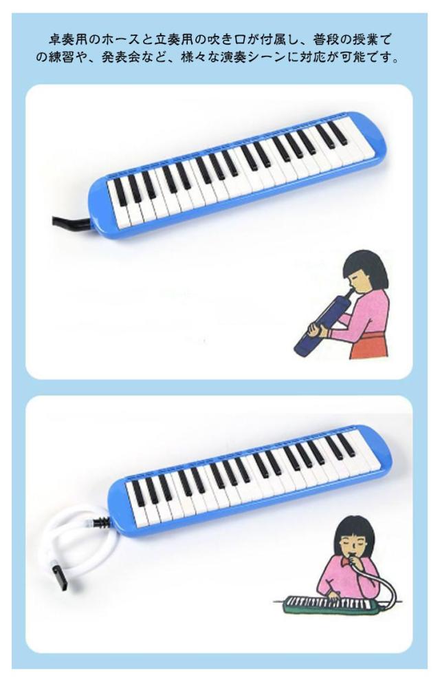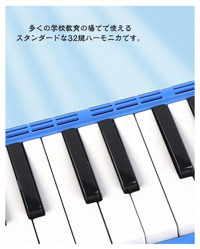 | 【32鍵ハーモニカ】【立奏・卓奏に対応】【収納ケース付き】 多くの学校教育の場でで使えるスタンダードな32鍵ハーモニカです。手触りの良さとスタンダードな音色で、子供から大人まで愛されている。初心者向けで、家族や友人へのプレゼントにも最適です。 本体は軽量で、収納ケースが付いており、小学生でも気軽に持ち運べます。 卓奏用のホースと立奏用の吹き口が付属し、普段の授業での練習や、発表会など、様々な演奏シーンに対応が可能です。 商品内容: 32鍵盤ハーモニカ、吹き口、卓奏用ホース、収納ケース、クロス。 | |
