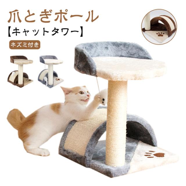 キャットタワー 猫タワー 猫 爪とぎ ポール ミニタワー 据え置き 省スペース 猫おもちゃ 天然サイザル 爪磨き 猫の遊び場 昼寝タワー 麻紐 頑丈 耐久 運動不足解消 組立簡単 ガリガリ ネズミ つめとぎ 爪研ぎポール