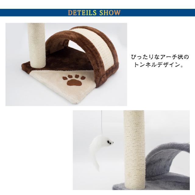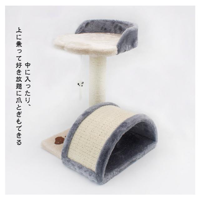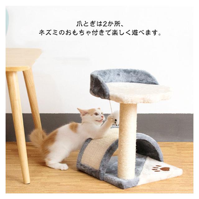 | 【爪とぎポール】【キャットタワー】【ネズミ付き】 高さ40cmのおうちに置きやすい爪とぎポール。 狭いところが好きな猫ちゃんにもピッタリなサイズ感◎ 爪とぎは2か所、ネズミのおもちゃ付きで楽しく遊べます。 思いっきり爪とぎができ、ストレス発散もできて嬉しい◎ しっかり研げる丈夫な麻縄で沢山ガリガリしても大丈夫! 屋根付き爪とぎハウス 隠れ家にぴったりなハウス付き 狭いところが好きなねこちゃんに ぴったりなアーチ状のトンネルデザイン。 中に入ったり、上に乗って好き放題に爪とぎもできる キャットタワーの表面は柔らかく快適で、猫の休憩場所としても適しており、猫がリラックスして横になって休むこともできます。 | |
