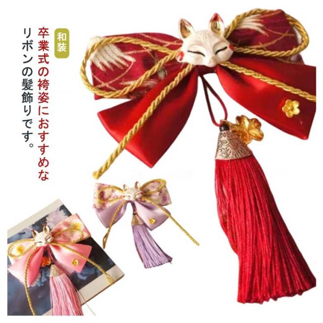 袴 髪飾り リボン ちりめん 成人式 卒業式 入学式 和装 浴衣 リボン ヘッドドレス 前撮り 振袖 結婚式 婦人 女性 ウェディング和婚 七五三 女の子 子供 ヘア アクセサリー 桜柄 花柄 キツネ リボン 大きめ 大きい 赤 ピンク 紫 黒 ネイビー 送料無料