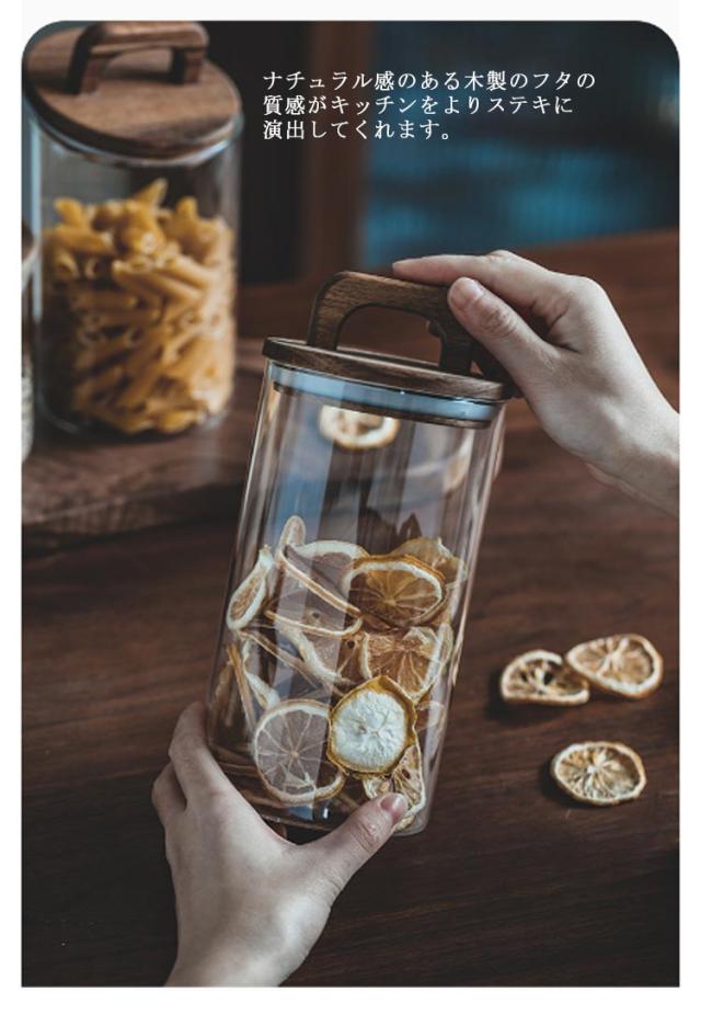 | 全7サイズ!シリコンパッキンもついて、密閉性も高いガラスキャニスターです。 本体がガラス製なので、中身がひと目でわかって便利。 またガラスなので、食品の色やにおいが付きにくく、清潔で便利。 ナチュラル感のある木製のフタの質感がキッチンをよりステキに演出してくれます。 蓋の内側縁にはシリコンパッキンが付いており、密閉性がありますので、乾物や食材保存にも適しています。 乾物などを保存する時に、収納しながらインテリアにもなる収納容器。 砂糖などの調味料をはじめ、ジャム、ドライフルーツ、コーヒー豆、ショートパスタなど、の食材保存にお使いいただけます。 お茶やコーヒーを何種類か揃えて、きれいにストックするのもいいですね。 | |