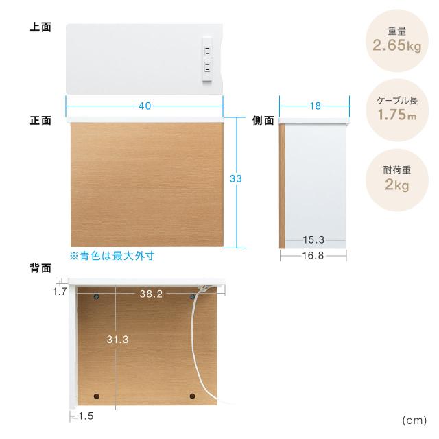 ルーター収納ボックス ケーブルボックス 幅40cm 高さ33cm コンセント付き 木製 スリム 角置き コーナー 壁面収納 電話台 ダークブラウン ライトブラウン ライトブラウン[200-CB046]