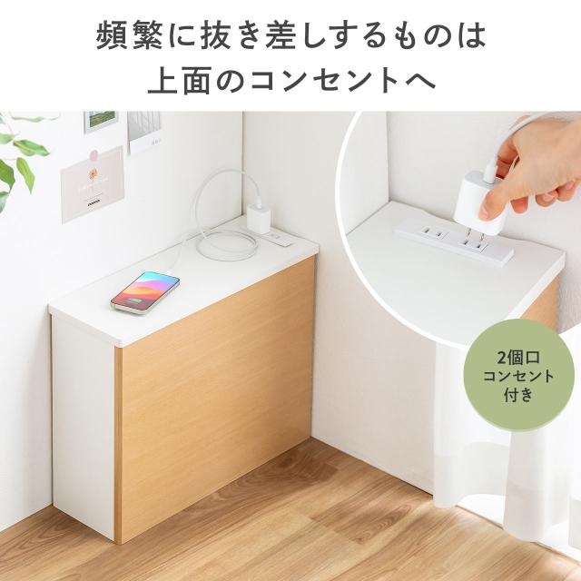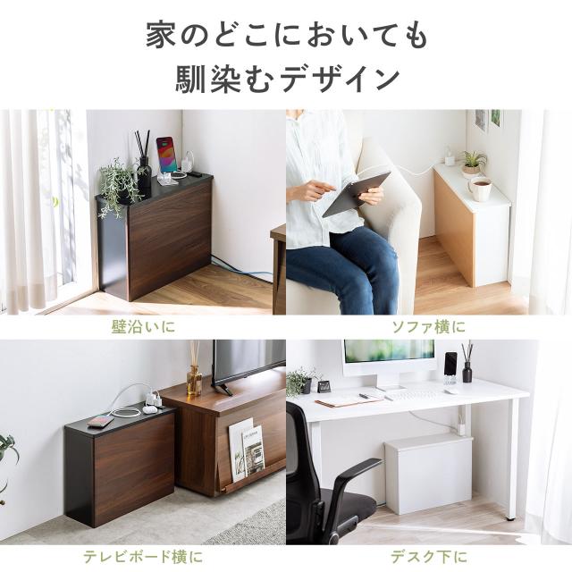 ルーター収納ボックス ケーブルボックス 幅50cm 高さ38.5cm コンセント付き 木製 スリム 角置き 壁面収納 コーナー 電話台 ダークブラウン ライトブラウン ライトブラウン[200-CB047]