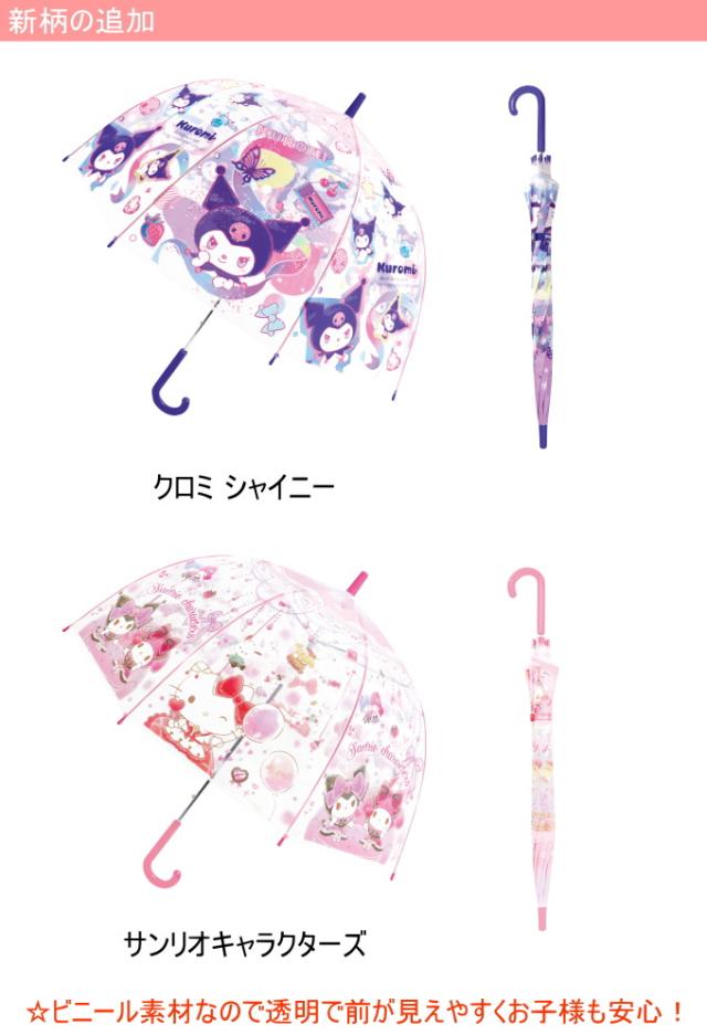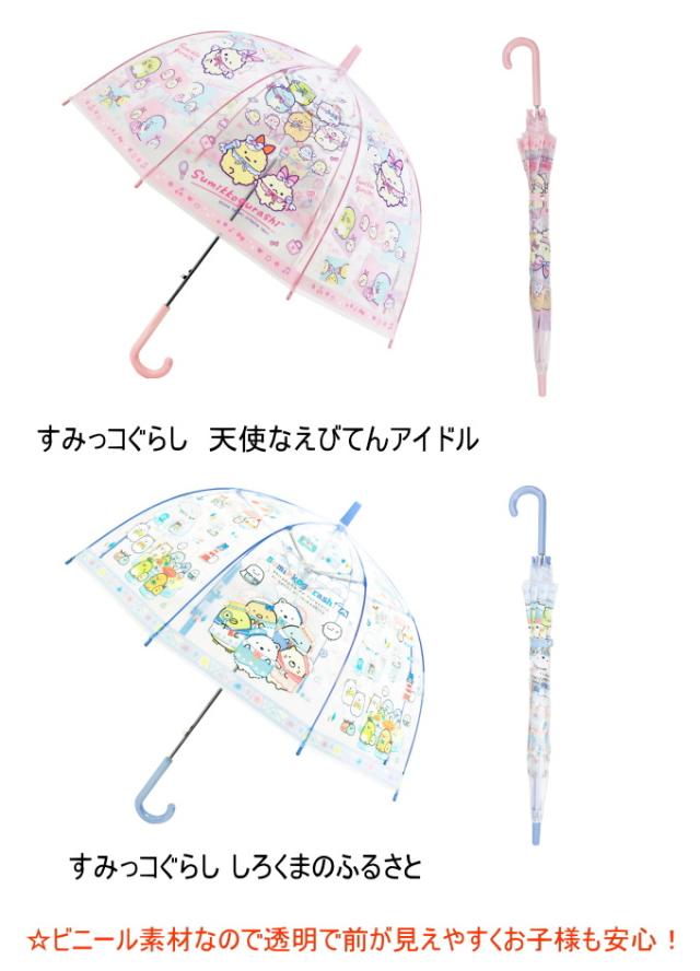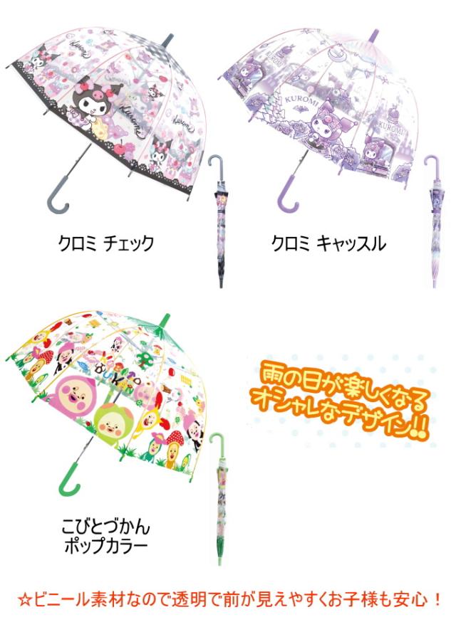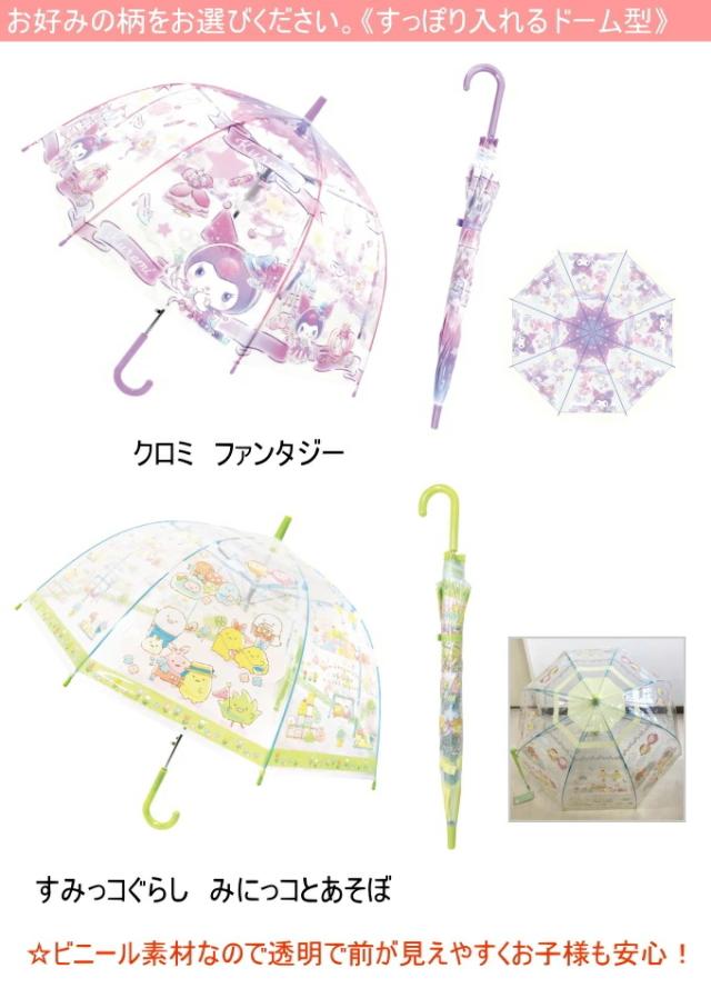 子供ビニール傘 55cm ドームタイプ かさ 傘 ビニール傘 ドームタイプ ドーム型 雨具 雨傘 クリア ワンタッチタイプ 8本骨 キャラクター クロミ すみっコぐらし こびとづかん サンリオ かわいい 雨 梅雨 ジェイズプランニング