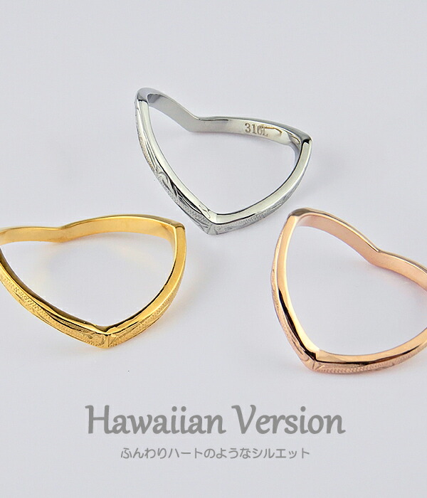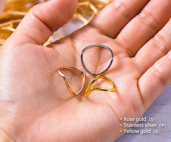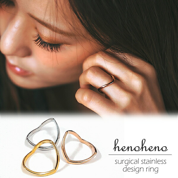 リング 指輪 レディース メンズ ステンレス つけっぱなし ニュアンス ハート 細身 V字リング デザイン おしゃれ サージカルステンレス 金属アレルギー対応 大人 重ねづけ 大きいサイズ ローズゴールド シルバー イエロー ブランド henoheno