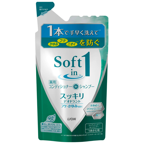 [ライオン]ソフトインワン リンスインシャンプー スッキリデオドラント つめかえ用 370ml[医薬部外品](薬用 コンディショナー