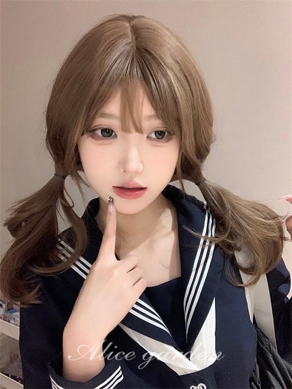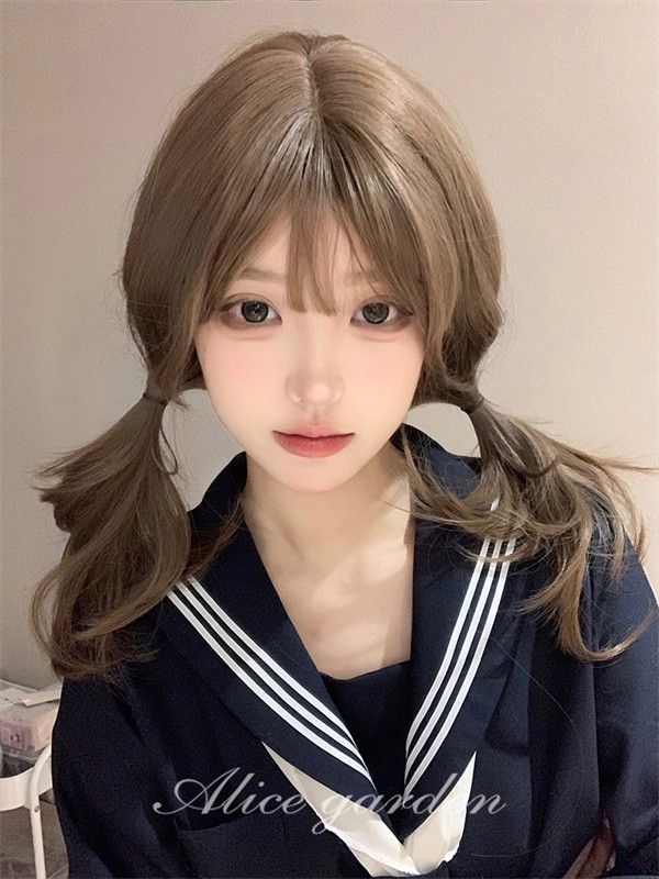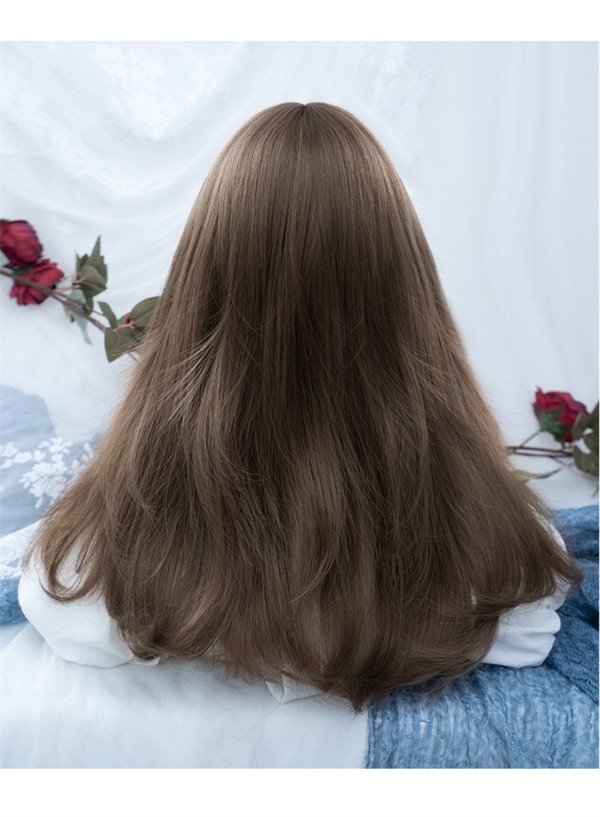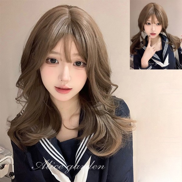ウィッグ ブラウン レディース フルウィッグ ミディアム ぱっつん前髪 前髪あり 可愛い かわいい 大人用 コスプレ ロリータ ゴスロリ コスチューム 原宿風 仮装 超自然 かつら wig Lolita 小顔 文化祭 hl022d7zu
