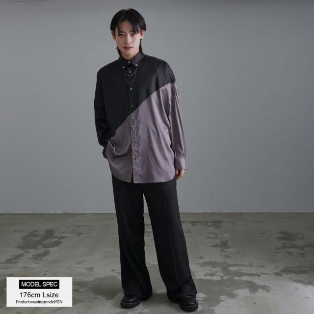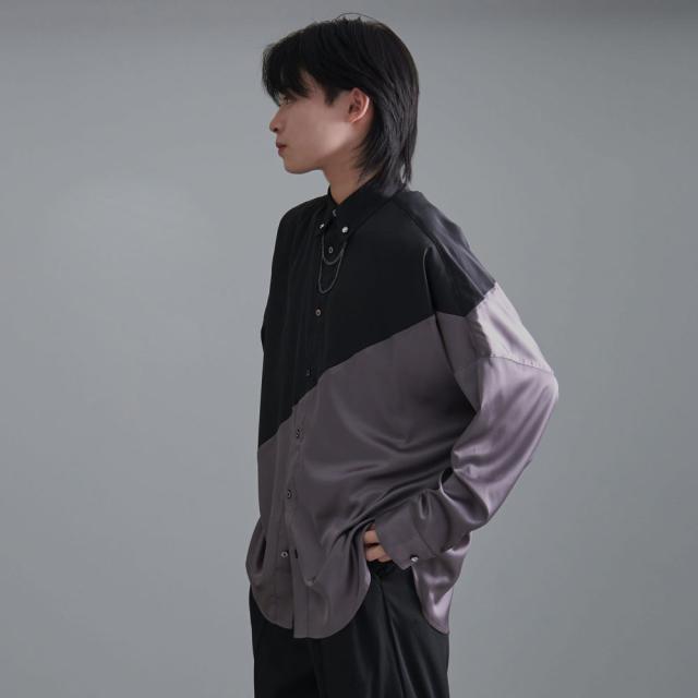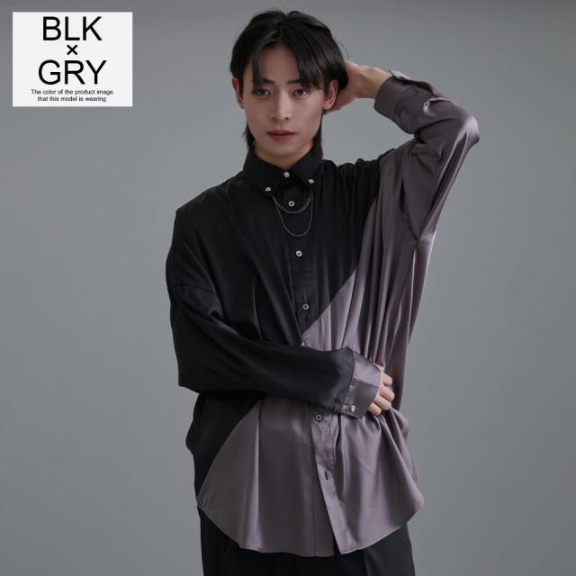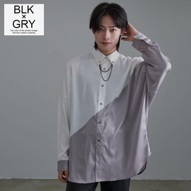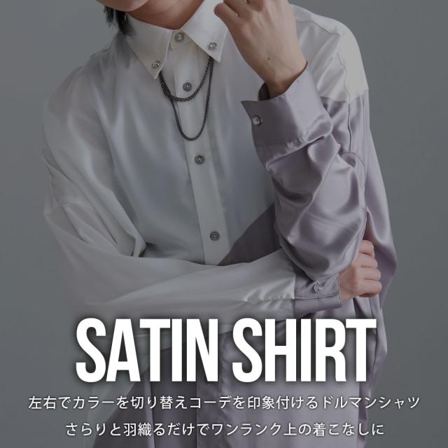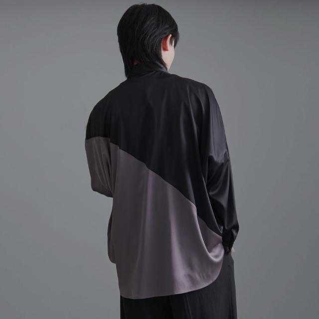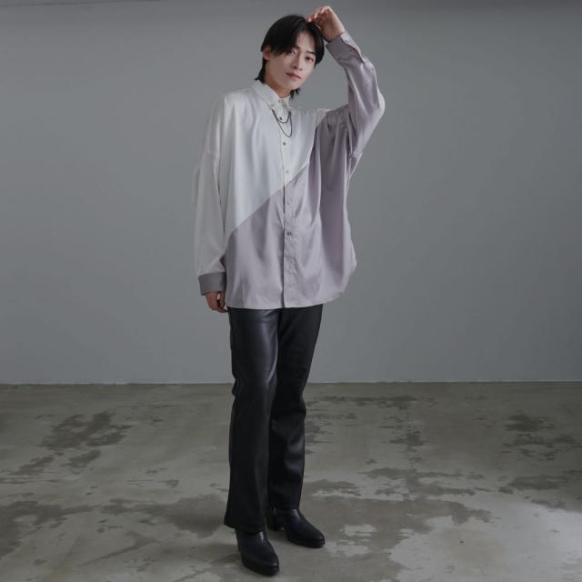左右でカラーを切り替えたデザインをあしらいコーディネートを印象付けてくれるドルマンシャツ。