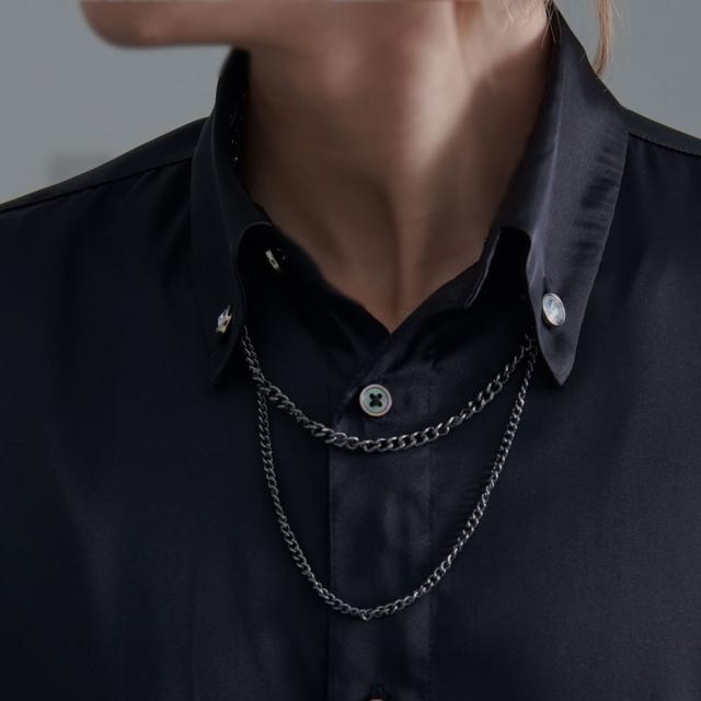 シャツ メンズ 長袖 長袖シャツ おしゃれ 切り替え ネックレス付 トップス 大きいサイズ ホワイト ブラック グレー 黒 白 M L ユニセックス CavariA 男性 服 春服 春 ファッション メンズファッション 20代 30代 40代 父の日 即日発送 [CANG24-11]