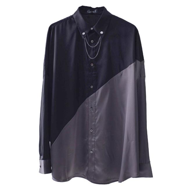 シャツ メンズ 長袖 長袖シャツ おしゃれ 切り替え ネックレス付 トップス サテン ドルマン 大きいサイズ ホワイト ブラック グレー 黒 白 M L CavariA カジュアル ストリート 男性 男 ユニセックス 服 春服 春 ファッション メンズファッション 20代 30代 40代 父の日 東京 プレゼント 誕生日 記念日 贈り物 ギフト配送について