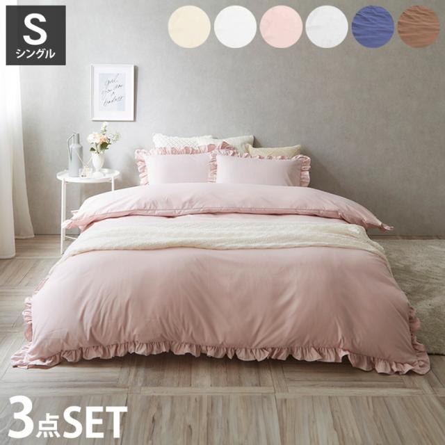 フリル付き布団カバーセット シングル 3点セット 寝具 フリル付 掛布団カバー 枕カバー ボックスシーツ ピーチスキン加工 丸洗いOK オールシーズン 寝具 インテリア おしゃれ かわいい 北欧(代引不可)【送料無料】