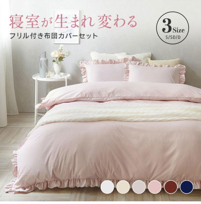 〇寝室が生まれ変わるフリル付き布団カバーセット