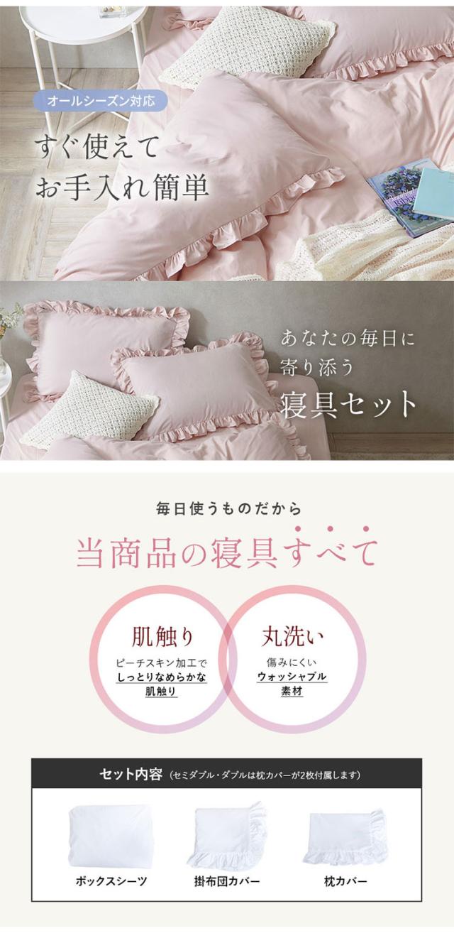 〇寝室が生まれ変わるフリル付き布団カバーセット