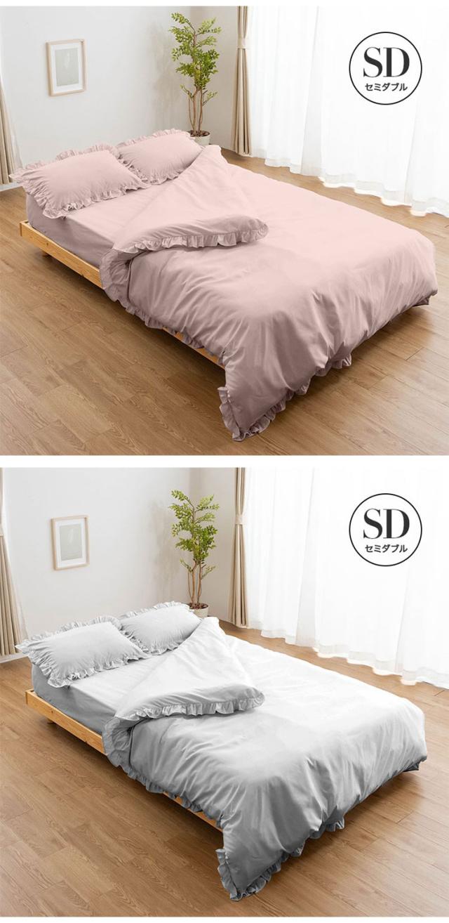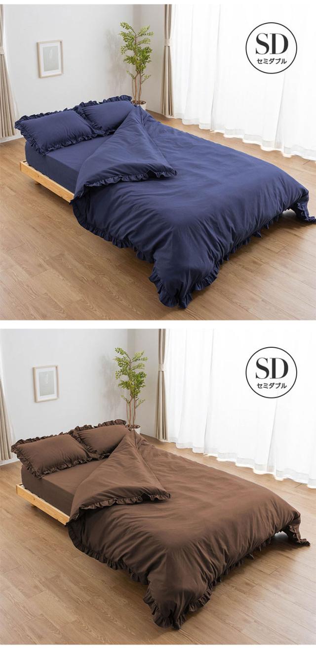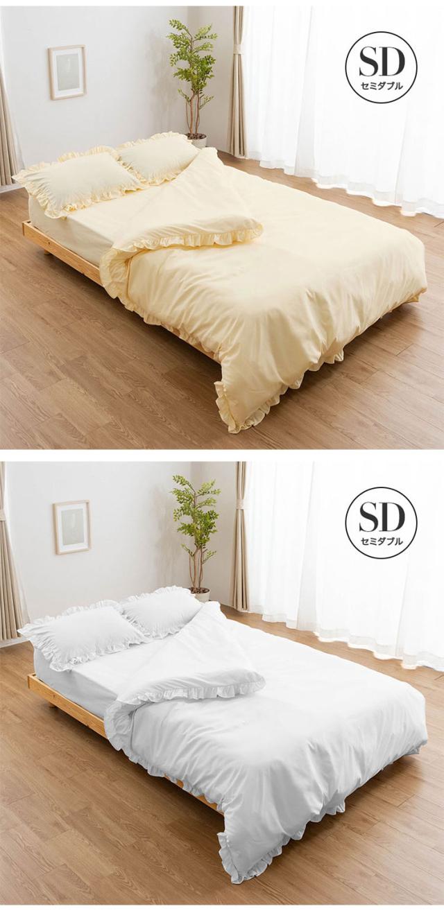 フリル付き布団カバーセット セミダブル 4点セット 寝具 フリル付 掛布団カバー 枕カバー ボックスシーツ ピーチスキン加工 丸洗いOK オールシーズン 寝具 インテリア おしゃれ かわいい 北欧(代引不可)【送料無料】