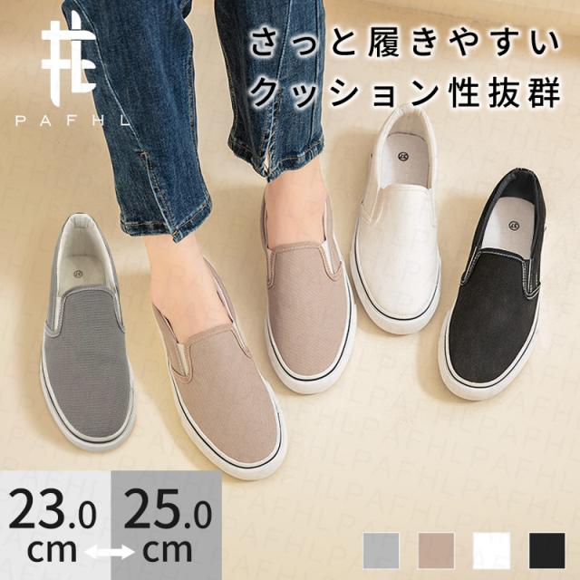 スリッポン ぺたんこシューズ レディース 紐なしスニーカー フラットシューズ キャンバス カジュアル 軽量 シンプル 痛くない 履きやすい 疲れない 無地 23.0cm-25.0cm