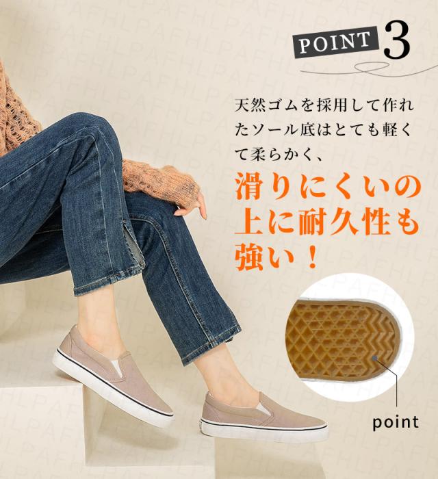 サッと履きやすい アッパーは柔らかなキャンバス生地を使用 天然ゴームを採用