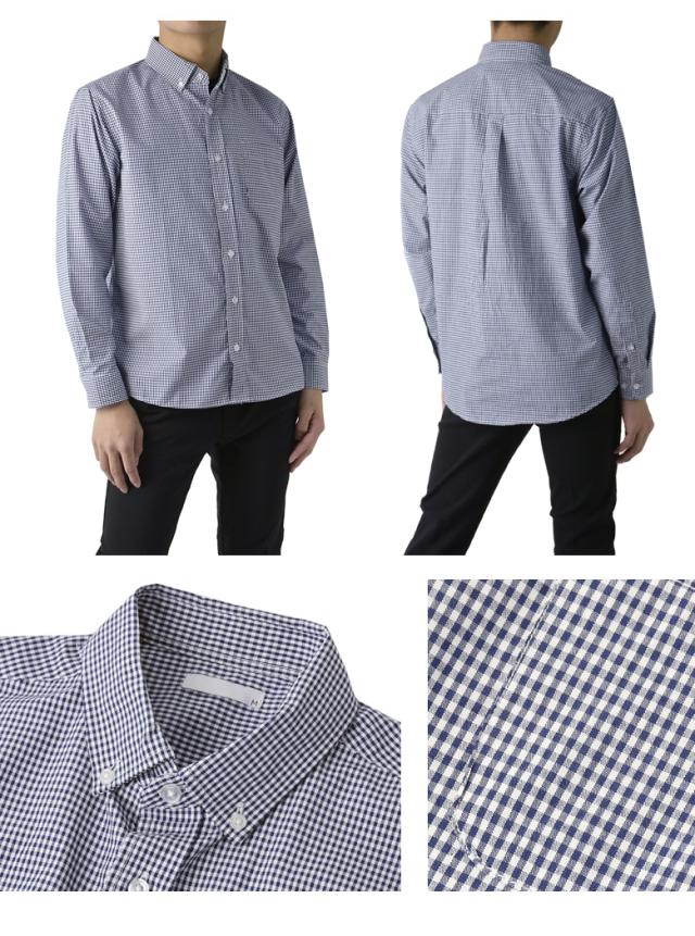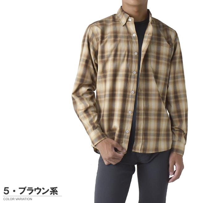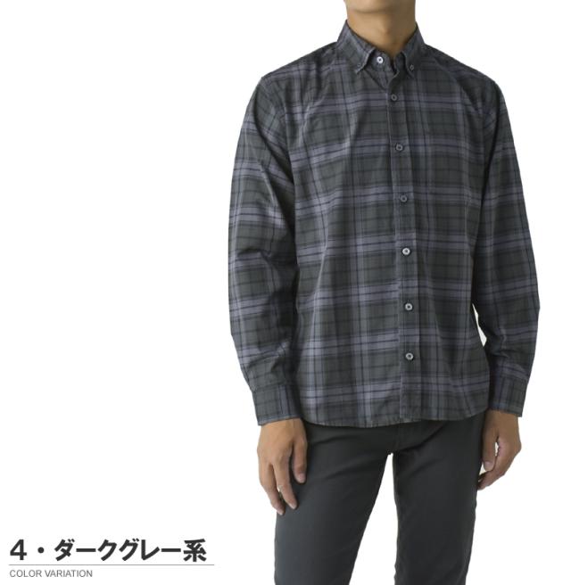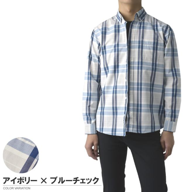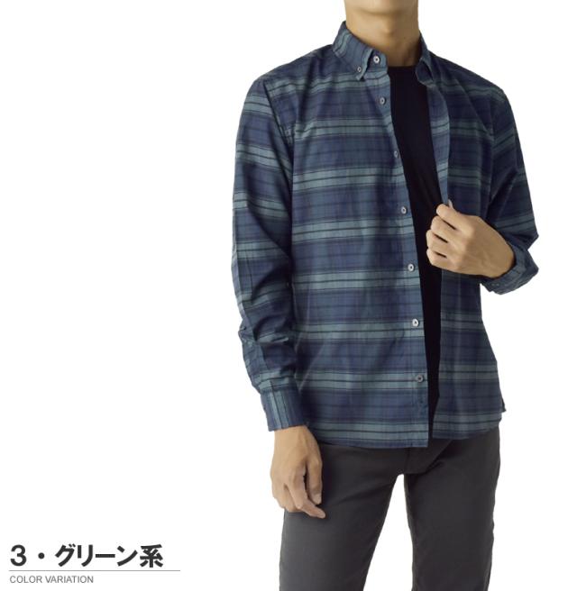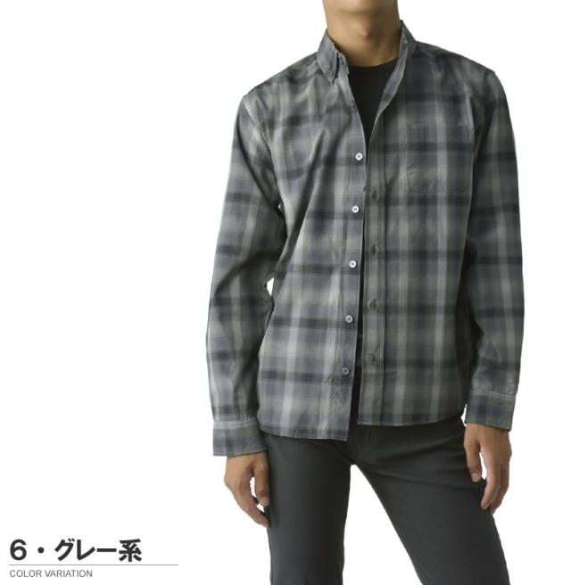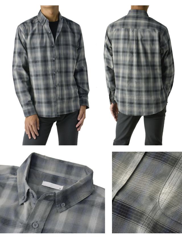 メンズ 長袖 ボタンダウンシャツ カジュアル コットン 綿混 イージーケア チェック ストライプ オンブレーチェック【A4M】【パケ2】