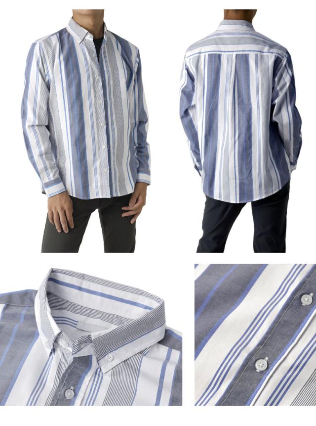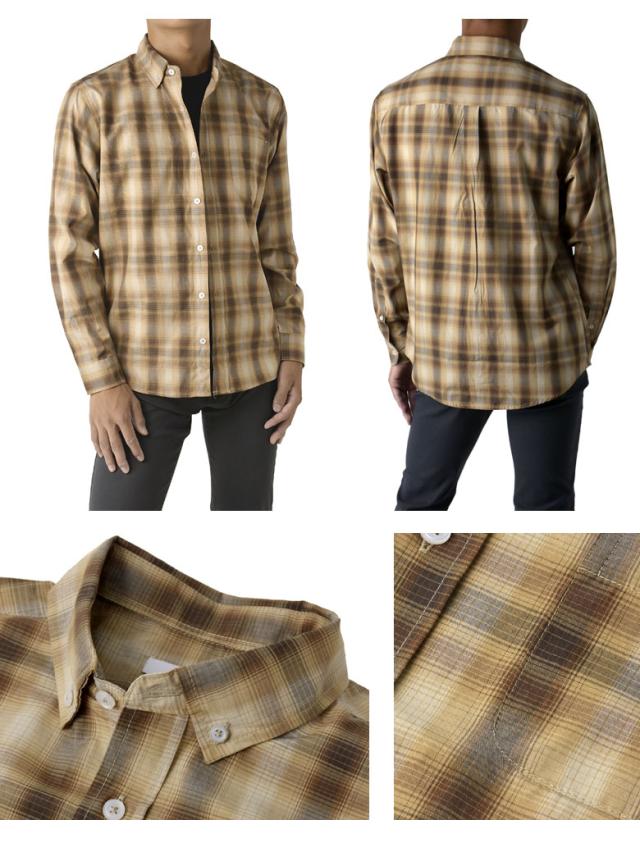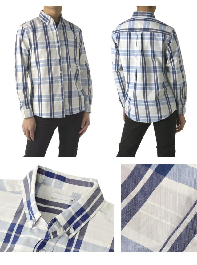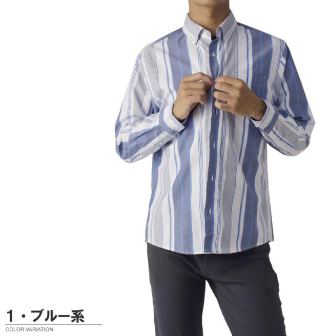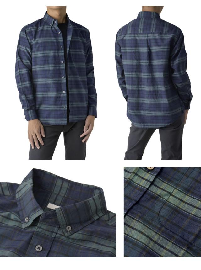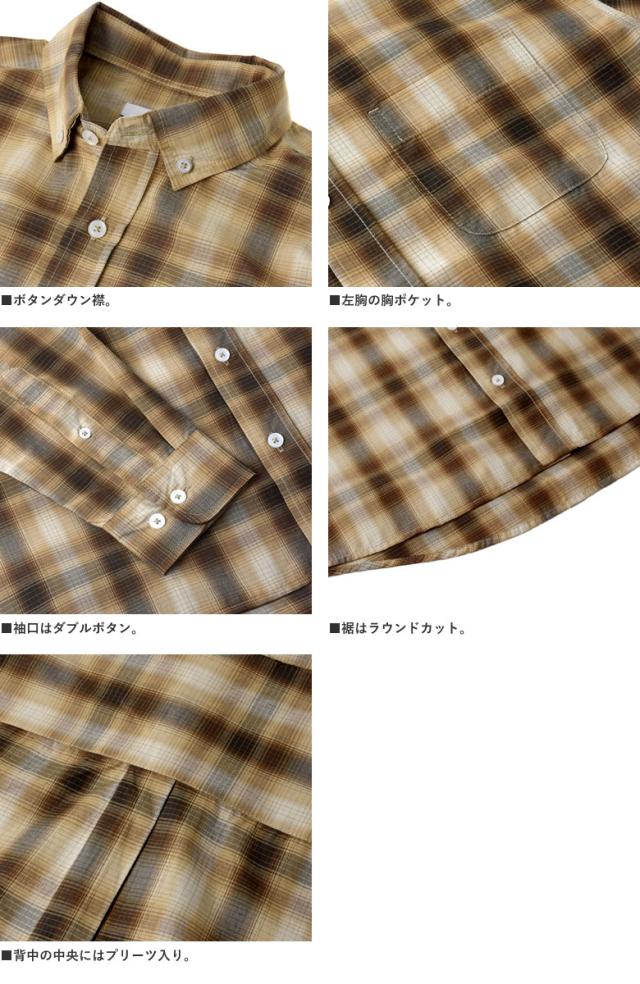 メンズ 長袖 ボタンダウンシャツ カジュアル コットン 綿混 イージーケア チェック ストライプ オンブレーチェック【A4M】【パケ2】