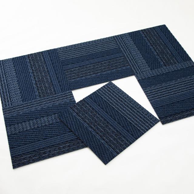 ◆商品名:川島織物セルコン ケーブルニット? ユニットラグ タイルカーペット ブルー 50×50cm UR2203 6枚入り/1ケース 日本製