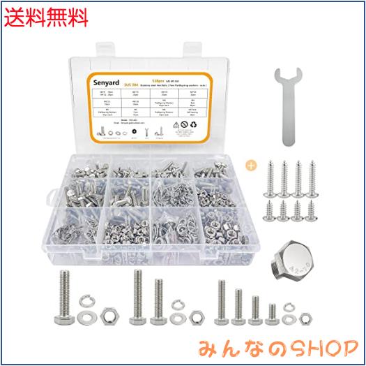 ◆商品名:Senyard 六角ボルト 錆びない ステンレス ボルト ナット セット, M6 M5 M4 六角ネジ セット 518pcs ボルトナットセット ステンレスボルト