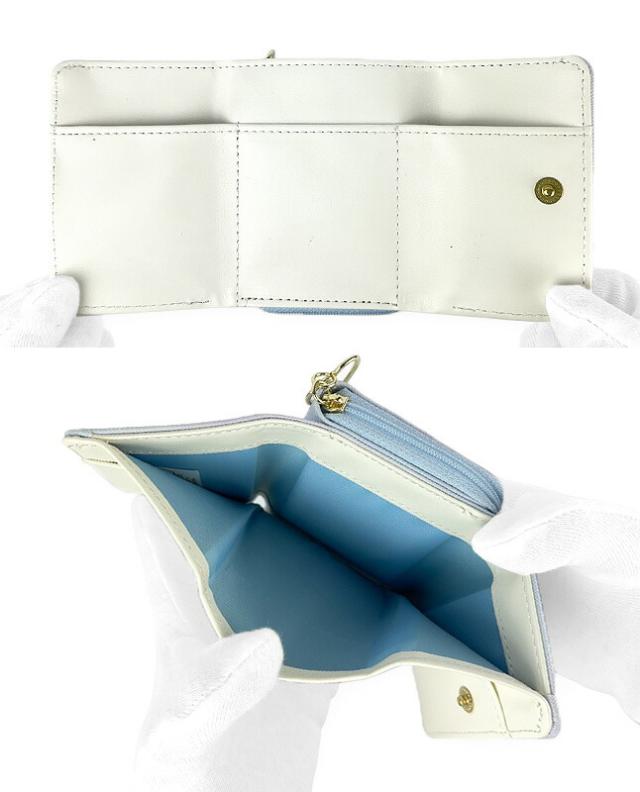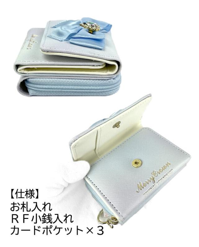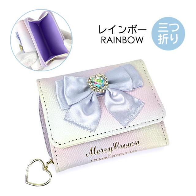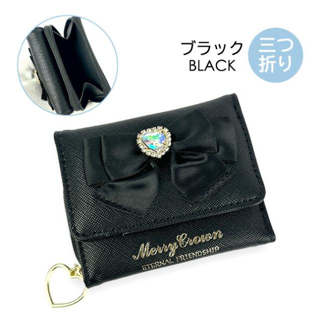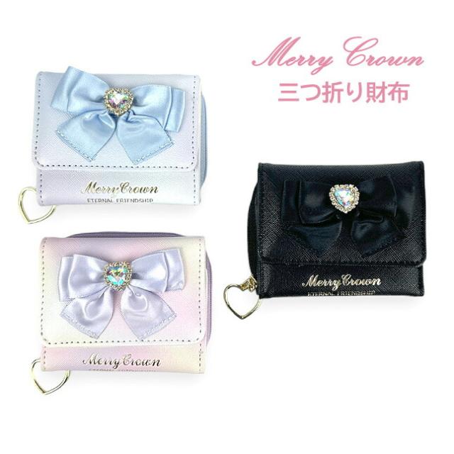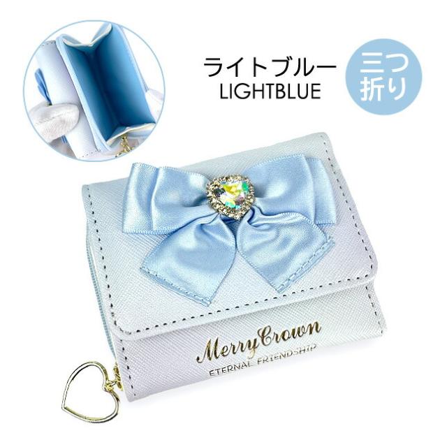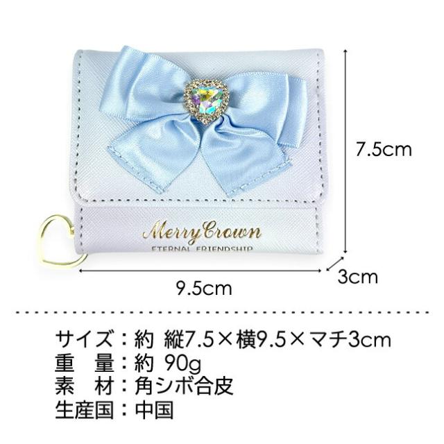 ハートビジュー付きのリボン飾りがとってもキュートな三つ折り財布。