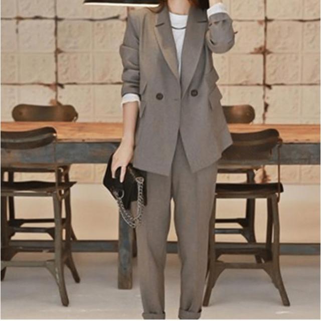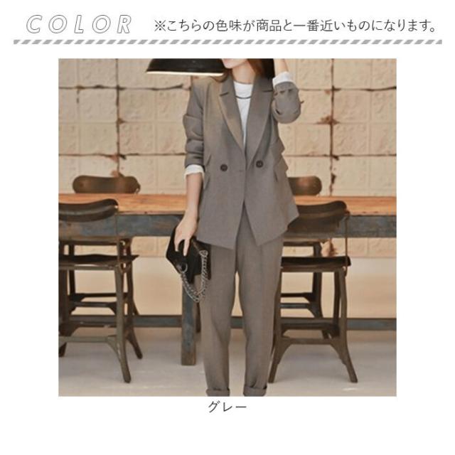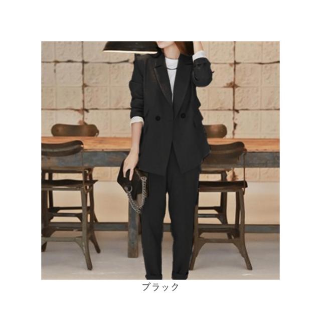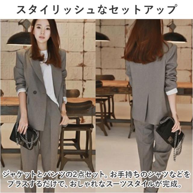 スーツ レディース カジュアル 通販 パンツスーツ セットアップ おしゃれ かっこいい ママスーツ 結婚式 セレモニー 大学生 2点セット 上下セット 長袖 ダブル ウエストゴム 通勤