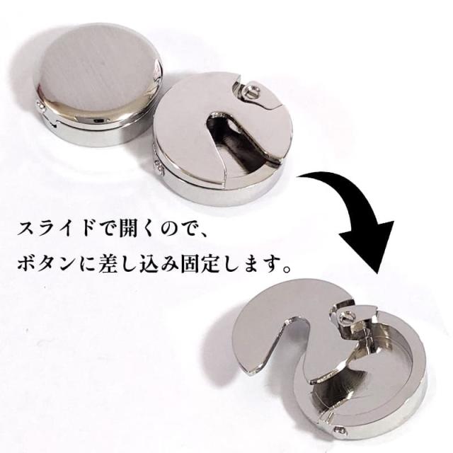 裏面のカバーをスライドし、ボタンの下に差し込むだけで固定できます。
