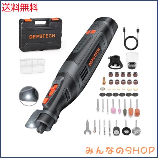 DEPSTECH ミニルーター 8Vリューター 2500mAh充電式 コードレス 30000RPM高速回転 5段変速 46種類アクセサリー LEDライト搭載 電動ハンド