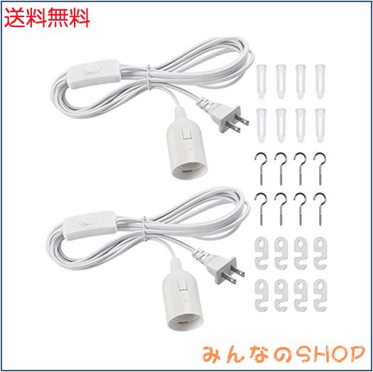 DiCUNO コード付きソケット E26 電球ソケット コンセント 吊り下げスイッチ付き 4m ホワイト オシャレ 2個セット