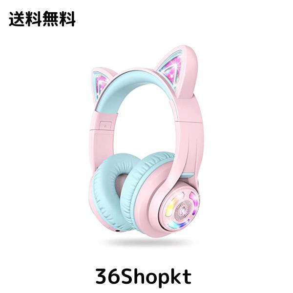iClever 子供用ヘッドホン Bluetoothヘッドフォン 猫耳LEDライトアップワイヤレスキッズヘッドフォン 音量制限付き(74dB/85dB/ 94dB) 45Hプレイタイム マイク付き 学校/タブレット/PC用 BTH13 ピンク
