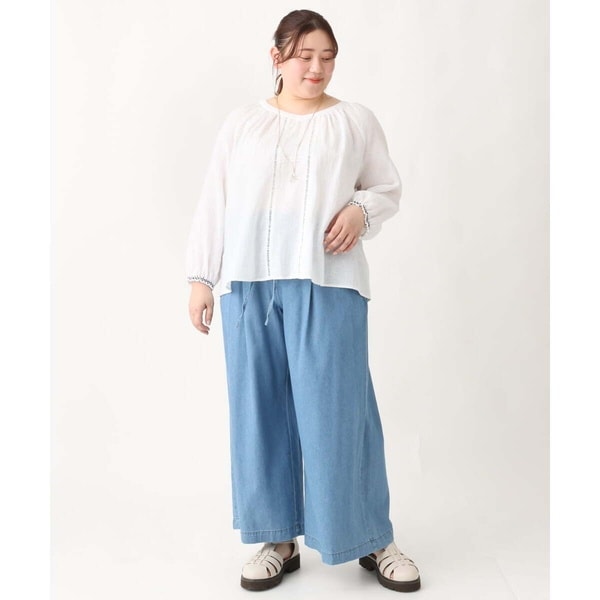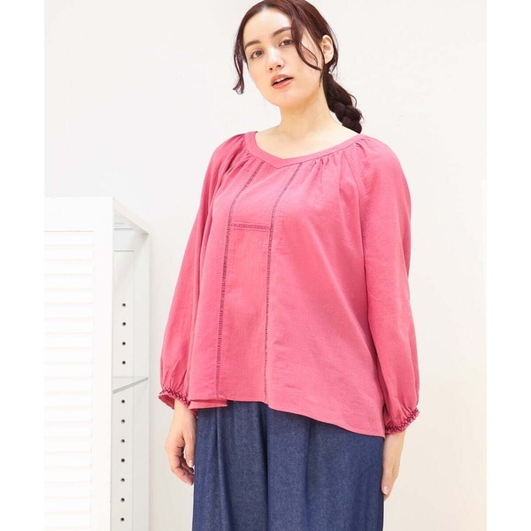 エウルキューブ(eur3)/【大きいサイズ】刺繍ハシゴレースブラウス