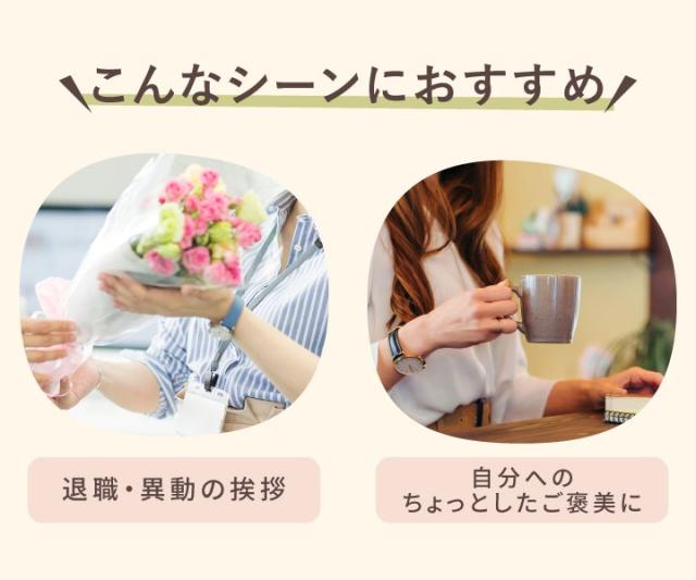 手渡しにぴったりなサイズで、退職や異動の挨拶、自分へのご褒美にも最適です。