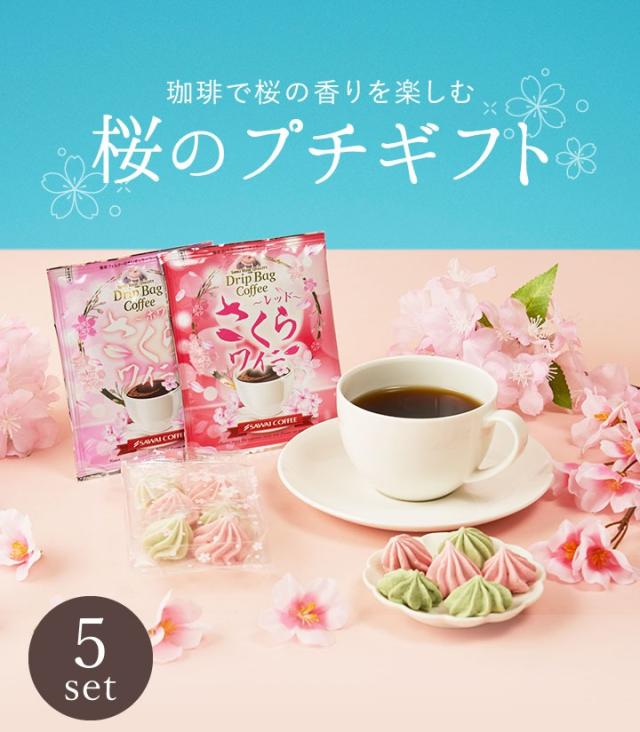 春 限定 桜のプチギフト まとめ買い 5セット コーヒー ギフト ドリップバッグ プレゼント ドリップバック 珈琲 個包装 8g スイーツ お菓子 引っ越し ご挨拶 ドリップコーヒー 退職 ギフトセット お返し プレゼント ホワイトデー