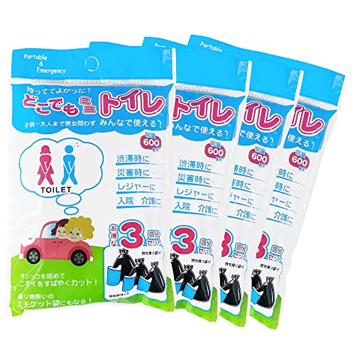 おしっこなどの排泄物・汚物をすばやく固めてニオイをガードします。 車の渋滞・介護・災害など様々なシーンでご使用頂けます。 お得な3個入り×4パックの12回分! 使用時の恥ずかしさを軽減する前かくしエプロンと使用後の廃棄に便利な持ち帰り袋付き。 容量600cc サイズ:処理袋15.5×23.5cm 持ち帰り袋18×38cm
