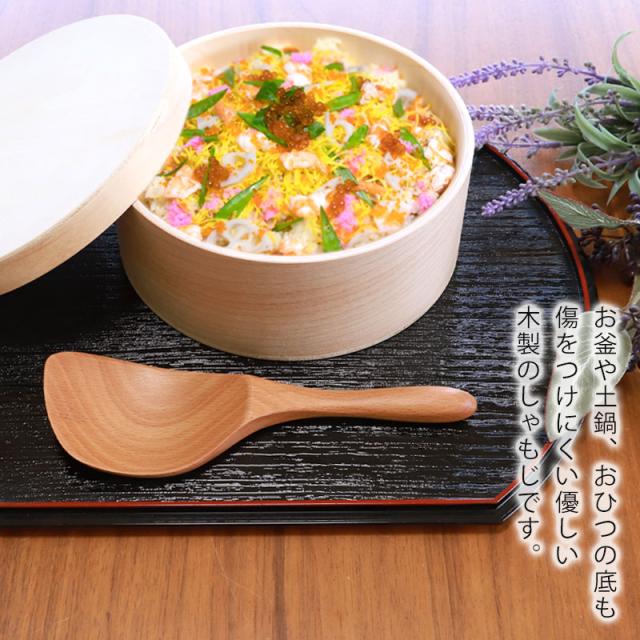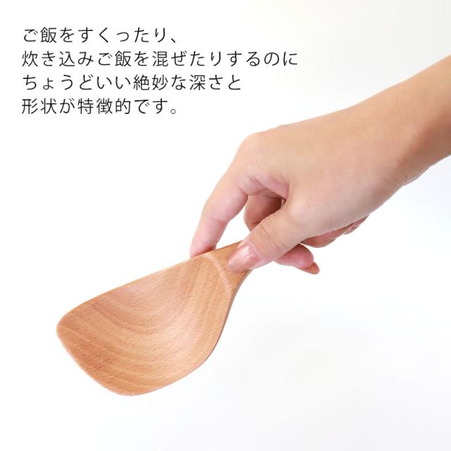 ご飯をすくったり、炊き込みご飯を混ぜたりするのに絶妙な深さと形状が特徴的です。