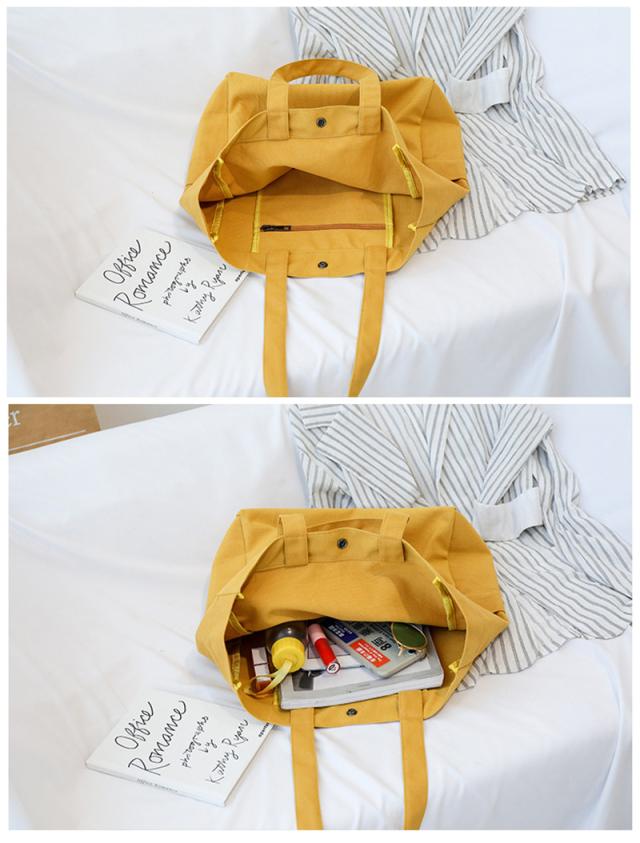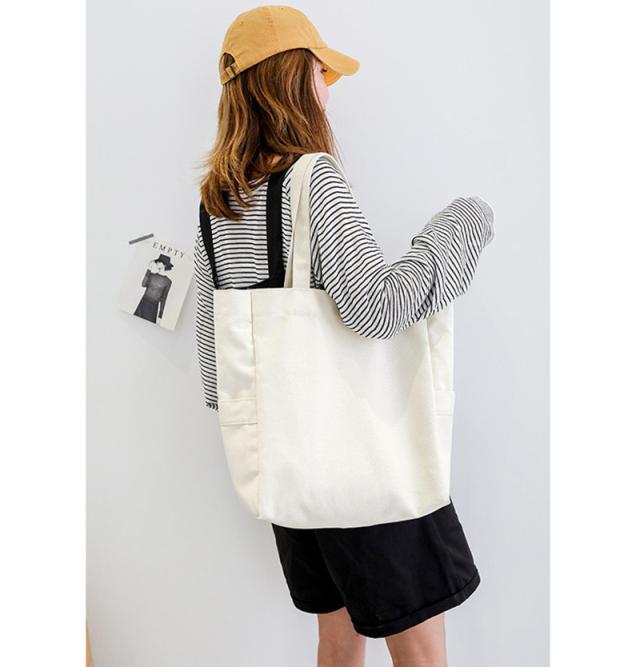 A4サイズの雑誌や参考書などを収納できる便利な大きさのキャンバスバッグ。