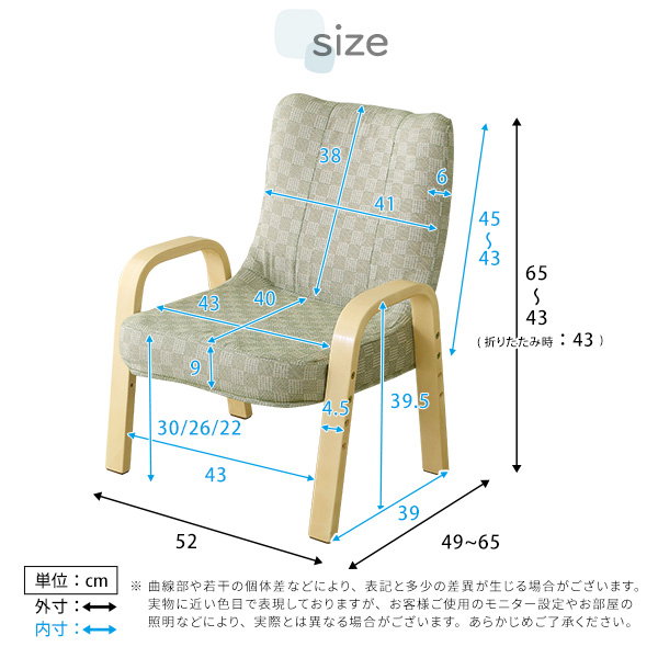 サイズ(約):W52×D49~65×H57/61/65(SH22/26/30)cm