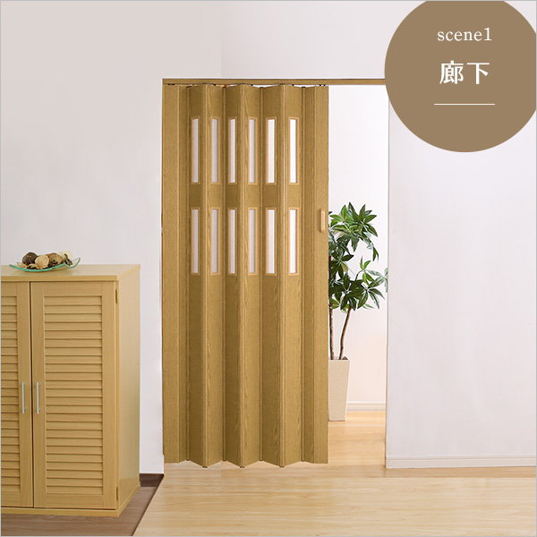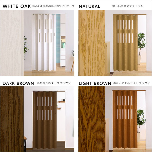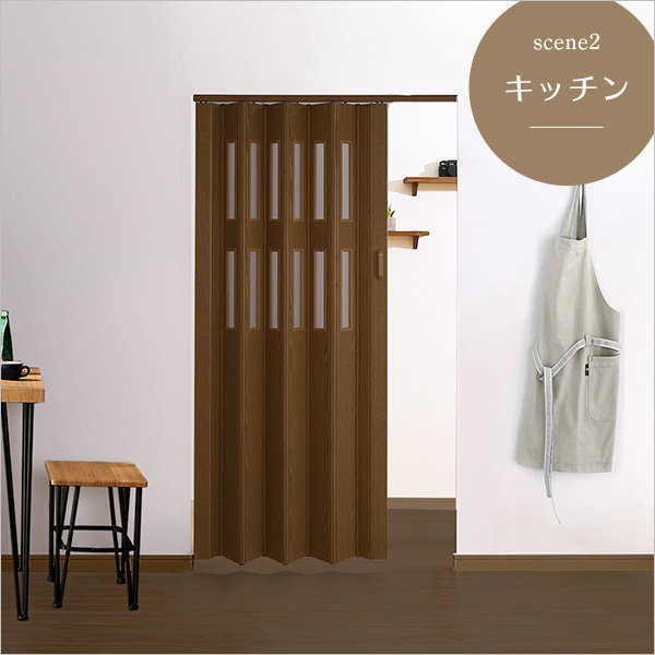 パネルドア アコーディオンカーテン 間仕切り DIY 工事不要 窓付き採光性も高い 木目調パネルドア EMIL