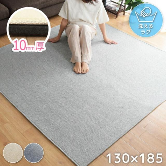 ラグ 厚手 下敷きラグセット カバー付き 洗える 春夏用 ラグサイズ 約130×185cm 北欧 ヘリンボーン 平織 無地 ボーダー ニュアンスカラー くすみ おしゃれ ノーイ ラグプラス