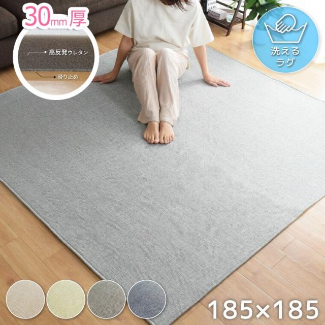 ラグ 厚手 高反発 下敷きラグセット 30mm厚 カバー付き 洗える 春夏用 ラグサイズ 約185×185cm 北欧 ヘリンボーン 平織 無地 ボーダー ニュアンスカラー くすみ おしゃれ ノーイ ボリュームラグプラス