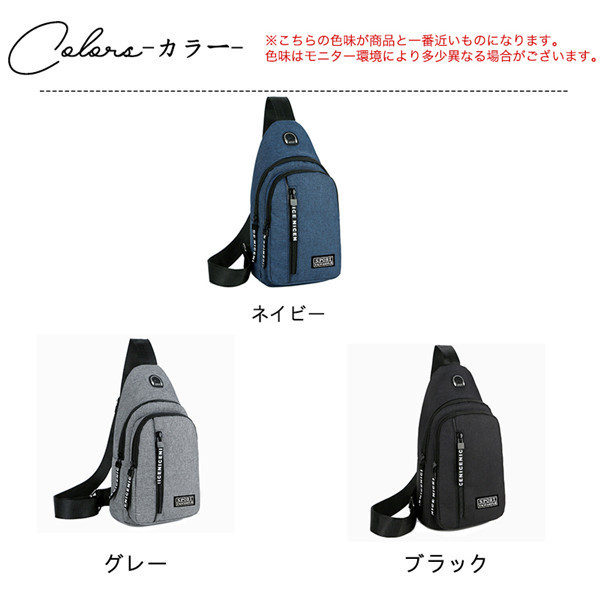 商品詳細カラー:/ネイビー/グレー/ブラック/サイズ:/ワンサイズ/■商品説明・シンプルながらもお洒落なデザインに機能面も充実のボディーバッグです♪・斜め掛けはもちろんウエストポーチとしても★・シンプルなデザインながら機能性と収納性を実現。・自転車に乗るときや旅先での使用、・近所に出掛けるときのワンマイルバッグとしてもおすすめです。■素材:ポリエステル、その他■サイズ:約31cm×17cm×6cm■ご注文:生産の関係により写真と色、柄、ファスナーのデザインが若干異なる場合があります。■キーワードショルダーバッグ ボディバッグ トートバッグ キャンパス ボディーバッグ 紳士用 簡易防水 サコッシュ 斜めがけ 肩掛け 安い 仕事 紳士鞄 ファニーパック ウエストポーチ USB ワンショルダー ナイロン 大きめ ヒップバッグ ブランド プレゼント ギフト 誕生日 バレンタインデー 多機能 通学 通勤 旅行 軽量 出張 軽量 おしゃれ 作業用 小さめ 仕事用 アウトドア 旅行 2Way かっこいい キャンパス 帆布 迷彩 ストリート 自転車 バイク 新生活 バッグ 人気