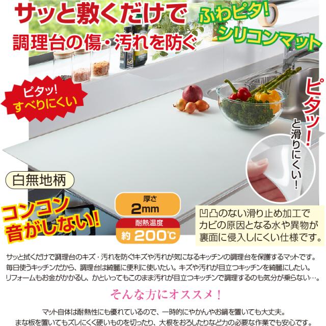 ふわピタ シリコン 調理台 マット (中)60×60cm 大理石調 白無地 カット可 キッチン シンク シリコンマット 保護シート 保護マット シンクマット キッチンマット 吸音 滑りにくい 滑り止め