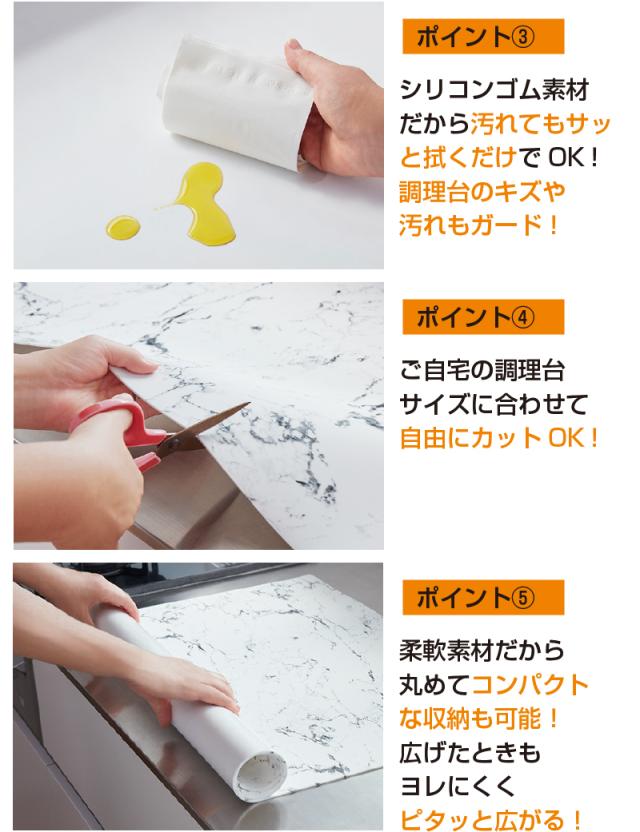 ■サッと敷くだけで調理台の傷・汚れを防ぐ。