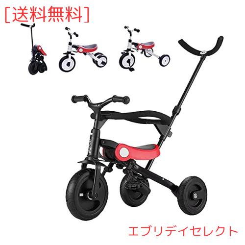 HZDMJ 3in1三輪車 安全ガード付き 折りたたみ三輪車 押し車 かじ付 組み立て簡単 自転車 子供用 発泡タイヤ 超軽量コンパクト 新型 便利