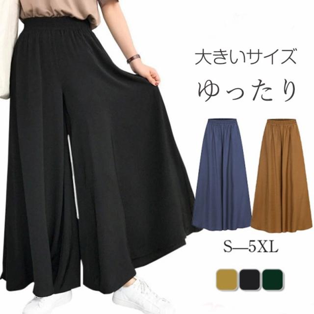 ワイドパンツ ガウチョパンツ レディース イージーパンツ 無地 体系カバー スラックス 長ズボン 太め 大きいサイズ ゆったり ハイウエスト 夏服