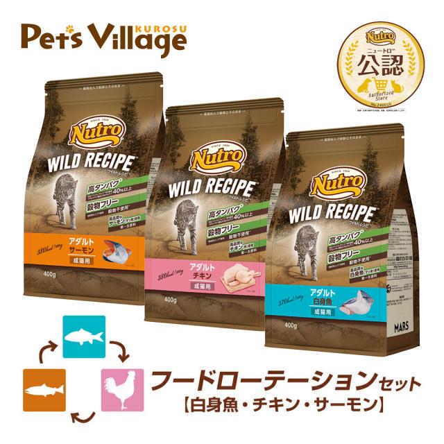 フードローテーションセット 公認店 ニュートロ キャット ワイルドレシピ アダルト 白身魚 チキン サーモン 成猫用 400g×3種 ごはん ご飯 ワイルドレシピ WILD RECIPE キャットフード