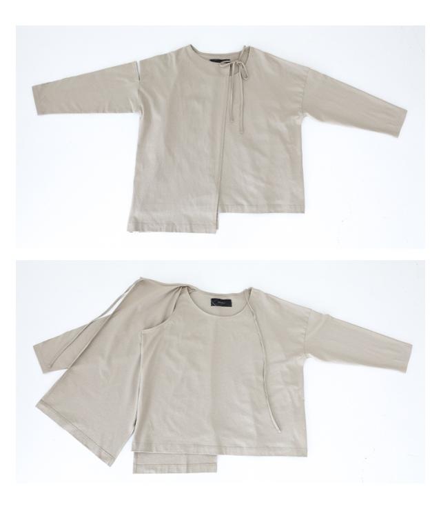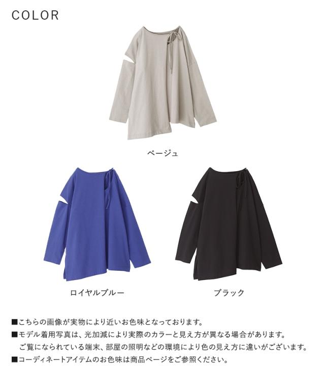ロンT トップス カットソー レディース 長袖 アシメ アシンメトリー スリット コットン100% 綿100% 肩開き 抜け感 プルオーバー クルーネック Uネック リボン 無地 肌見せ おうちで洗える カジュアル モード エフォートレス Sサイズ Mサイズ Lサイズ LLサイズ 3Lサイズ XLサイズ フリーサイズ ぽっちゃり 体型カバー 大きいサイズ 10代 20代 30代 40代 50代 60代 kOhAKU コハク 大人女子 大人可愛い お洒落可愛い 大人カジュアル ラフ スタイリッシュ 洗練 エッジィ 女子会 通勤 通学 お買い物 お出掛け 旅行 リゾート レジャー アウトドア キャンプ ベージュ ブルー 青 ロイヤルブルー ブラック 黒 【トップス】[ID]tlk0140[kOhAKUアシメカッティングロンT]